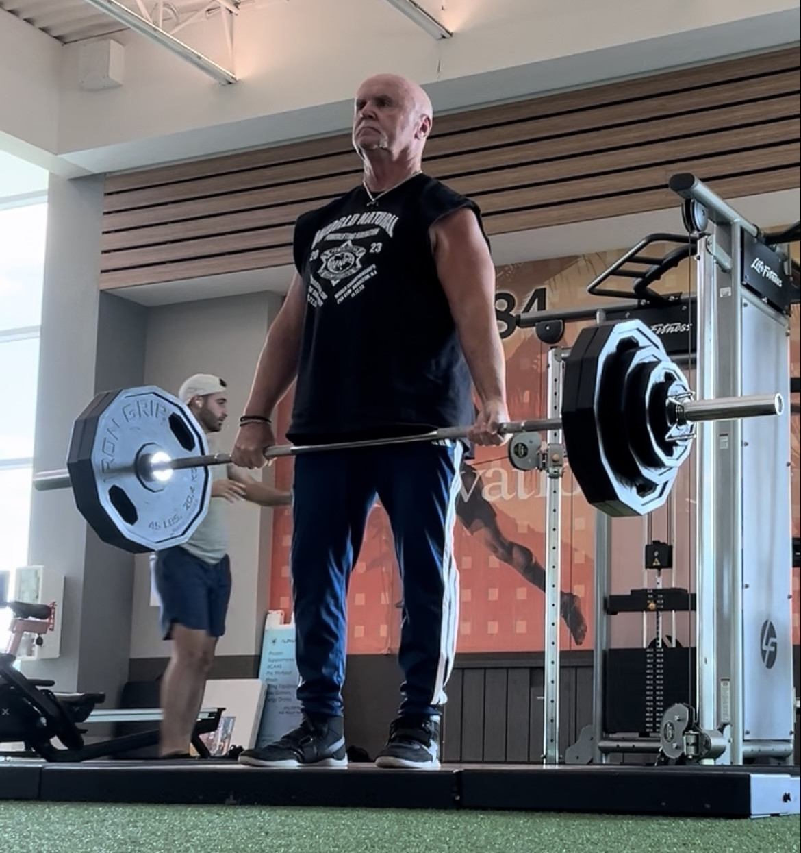 What’s your favorite way to train or stay fit?I train at least five days a week at my local LA Fitness. I have a four day rotation of pushing, pulling, legs, cardio and boxing. I plan to enter the NJ Senior Olympics in the fall (50 meter dash and shotput). And then enter my first bodybuilding competition.