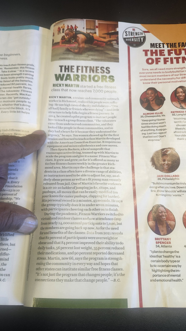 Receive Text UpdatesThe community health initiative I helped to create was featured with me in Men’s Health Magazine Nov.2022 page 63. Seeing large segments of my community get healthy, reduce and come off medication are just some of the things that fuel my passion as a trainer of trainers.